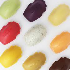 Madeleine-vormige zepen met heerlijke geuren van abrikoos, passievrucht, vanille, mango...