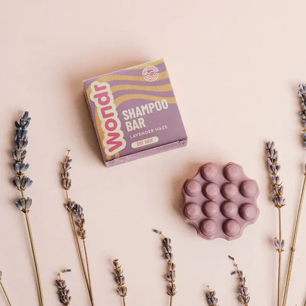 Wapper met je haren en waan jezelf in la douce France! Echte lavendelolie in onze hydraterende shampoo bar Lavender Haze laat je haar heerlijk ruiken en werkt kalmerend voor je hoofdhuid. Jojoba olie beschermt en shea butter doet zelfs de droogste lokken terug glanzen. Deze hydraterende shampoo bar is ook geschikt voor krullen.