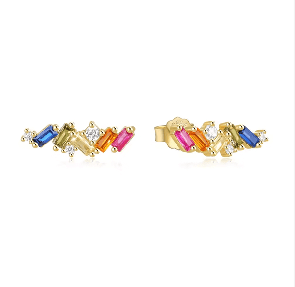 Maak je klaar om te schitteren met Ma Cherie OORBELLEN. Deze oorstekers zijn gemaakt van sterling zilver en versierd met kleurrijke zirkonia voor een vleugje glamour. Zeg vaarwel tegen saai en hallo tegen oogverblindend met deze speelse en eigenzinnige oorbellen. (Let op: zirkonia-stenen hebben de look van diamanten, maar dan zonder het hoge prijskaartje!)